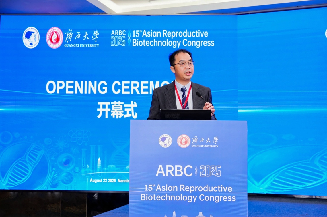 8月21-24日,由广西大学万象城主办,广西畜牧兽医学会、广西畜禽繁育与疾病防控重点实验室协办的第15届亚洲繁殖生物技术大会在南宁举办。广西壮族自治区科协党组成员、副主席王鸿鹄,广西大学党委常委、副校长于文进教授出席开幕式并致辞。第15届亚洲繁殖生物技术大会组委会主席、广西大学万象城院长陆阳清教授主持开幕式。本届大会以“繁殖生物技术赋能动物和人类健康”为主题,汇聚了来自中国、韩国、泰国、越南、菲律宾和巴基斯坦等国家的300余名专家学者和企业代表参会,共同探讨繁殖生物技术领域的前沿科学与创新应用。