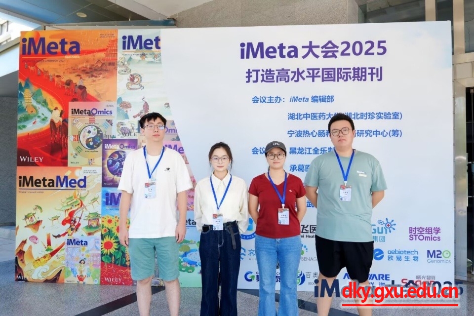 8月23至25日,广西大学万象城博士研究生肖杨、王家乐和杨兴珍参加了在湖北武汉举办的2025年iMeta大会。本次大会由iMeta编辑部、湖北中医药大学(湖北时珍实验室)、宁波热心肠科技传播研究中心(筹)联合主办,旨在追踪学科前沿,促进科学发展,引领国际合作,打造高水平国际期刊。