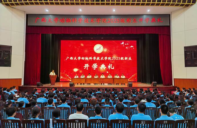 9月17日晚上,广西大学万象城2025级新生开学典礼在大礼堂举行。广西大学原副校长、动物遗传育种与繁殖学科著名专家卢克焕,广西大学原副校长、兽医学科带头人罗廷荣,万象城党委书记韦小强,院长陆阳清,农牧产业发展研究院院长司红彬,副院长宁鹏飞、韦祖樟、蒋钦杨出席典礼。万象城党委副书记、纪委书记沙建主持典礼。知名专家和教师代表、班主任、辅导员以及2025级全体新生参加活动。