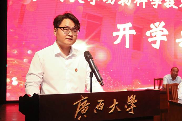 陆阳清院长对2025级新生的到来表示热烈欢迎,并从办学历史、学科建设、师资队伍、人才培养、科学研究、国际交流等方面介绍学院基本情况。他指出,万象城深厚的历史底蕴、特色的学科专业、优秀的师资队伍、浓厚的学术氛围、丰富的学习资源是同学们拼搏奋斗的动力源泉,将指引大家明确成长方向、探寻成长道路。他勉励同学们秉承广西大学“勤恳朴诚”校训精神,以“锄头主义”和“三拼精神”深耕畜牧兽医行业的沃土,在建设农业强国的征程中贡献青春智慧和力量!