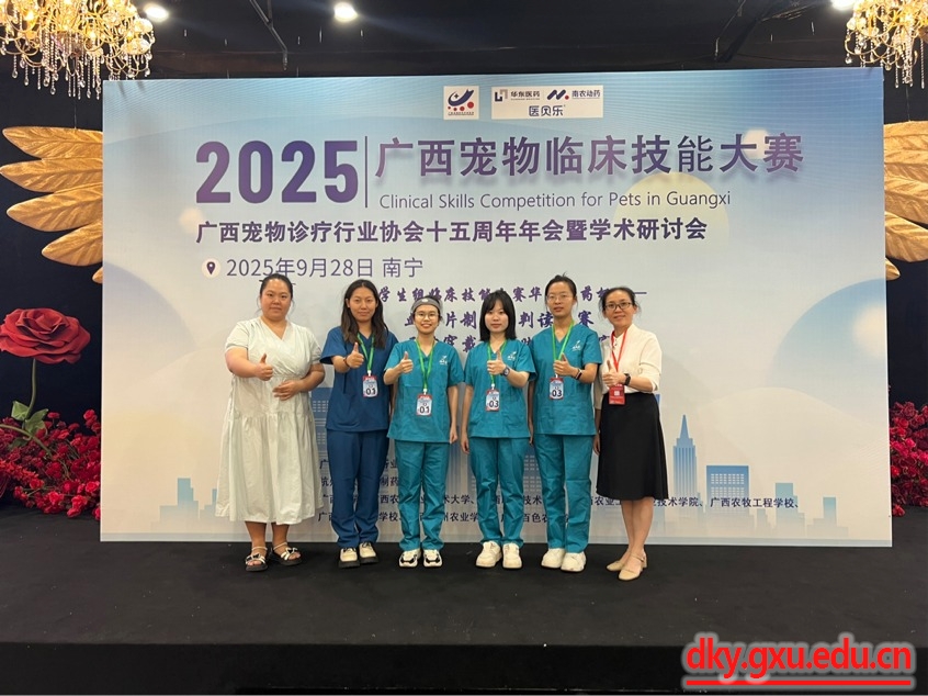 本次大赛聚焦宠物临床核心技能,设置血涂片制备与判读、无菌穿戴与皮肤缝合两大竞赛项目,吸引广西大学、广西农业职业技术大学、广西水产畜牧学校等多所院校参赛。其中,广西大学选派两支代表队出战,分别由何丽娜与四郎央宗、张亭与刘惠僮组成,由韦懿仙老师担任指导教师。