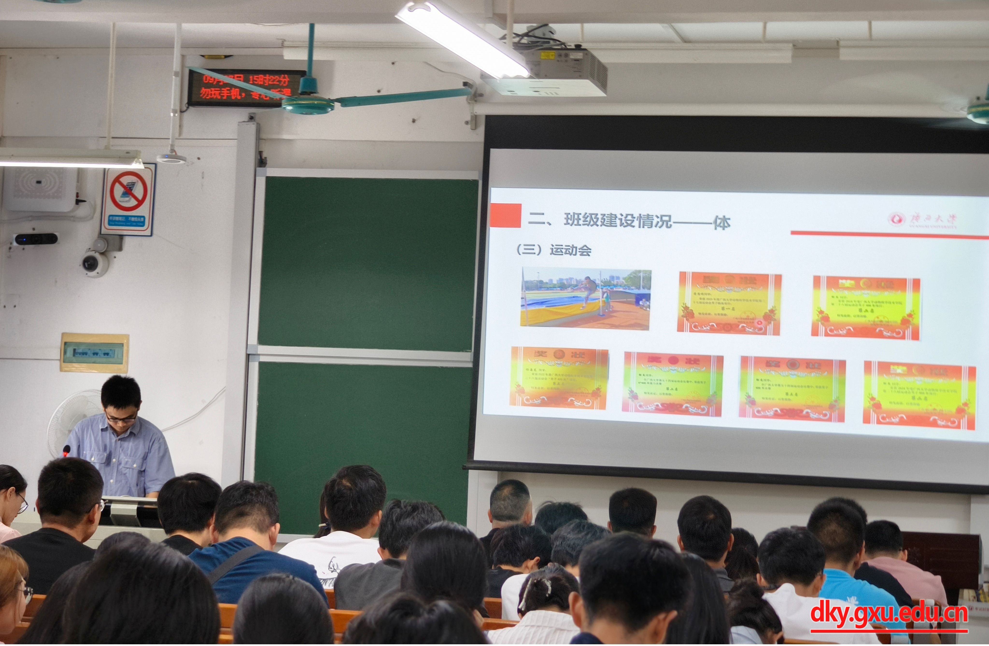 随后,欧伟豪老师介绍了动科224班的开设历程,并从德、智、体、美、劳五个方面详细介绍了班级建设情况和取得的成绩,鼓励同学们再接再厉,争取更大进步。