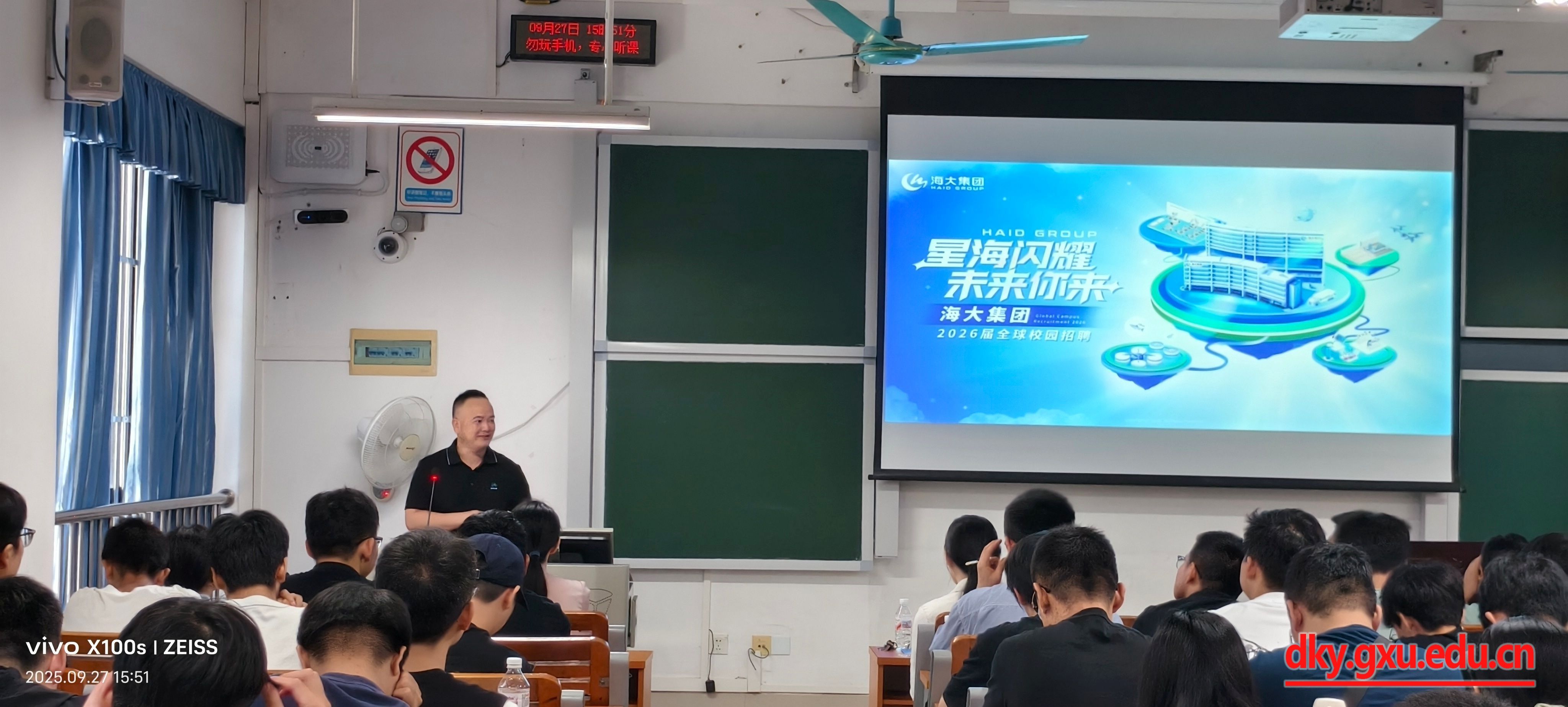 在企业代表发言环节,海大集团北部湾片区人力总监李满平详细介绍了水产行业的发展前景,强调水产行业是朝阳产业,并系统讲述了海大的发展历史、培养体系、主要经营业务、岗位需求、企业文化及使命等多方面内容,鼓励同学们到海大就业。湛江海大技术服务高级工程师于杰表示,自己作为广西大学水产研究生,非常感谢广西大学水产学科的培养,并分享了自己入职海大的心得体会和取得的成绩,鼓励同学们加入海大,投身水产行业。