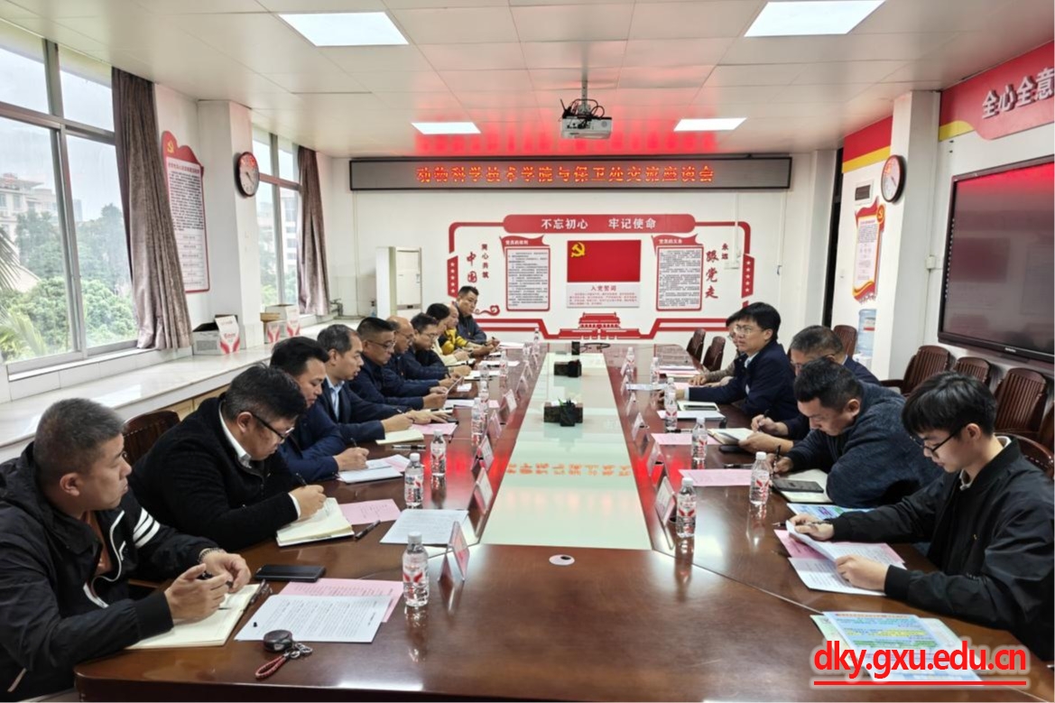 11月18日下午,广西大学保卫处处长侯泽,副处长沈大盛、陈宏一行来到我院调研,并在学院302报告厅召开交流座谈会。学院党委书记韦小强,副院长郭爱涛、何家康出席活动。座谈会由韦小强书记主持。