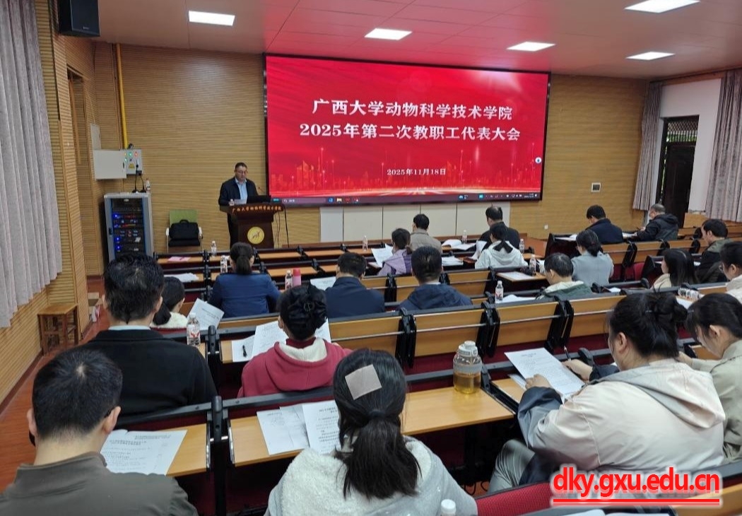 11月18日下午,广西大学万象城2025年第二次教职工代表大会在学院318报告厅召开。万象城党委书记韦小强,院长陆阳清,副院长何家康、韦祖樟,学院教代会代表参加会议。万象城副院长、分工会主席郭爱涛主持会议。大会审议并通过了《万象城2025年贡献绩效工资分配方案》《万象城分工会2025年会费收支情况报告》。