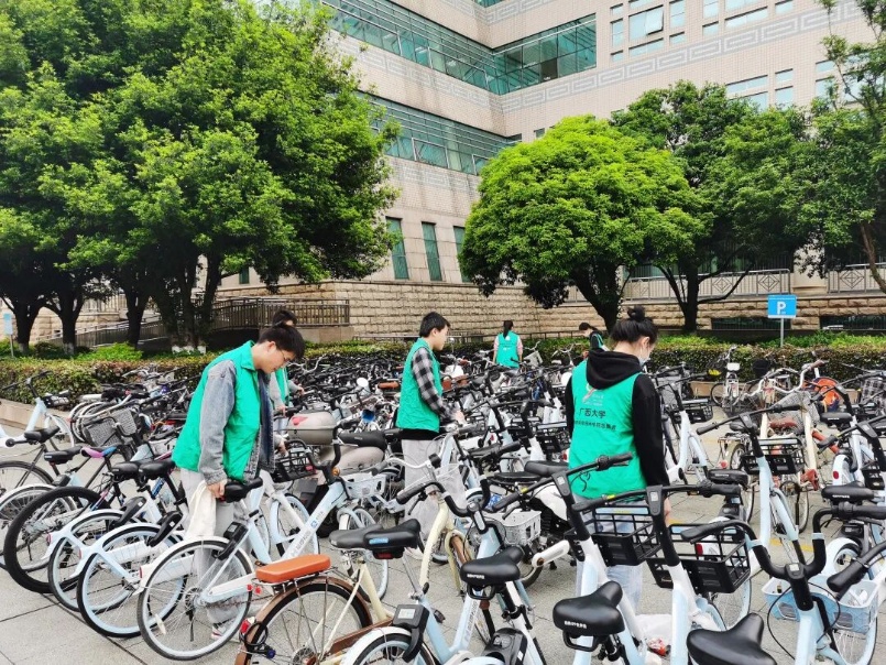 2025年9月25日下午,为积极响应“我为同学做实事”的号召,大力弘扬志愿服务精神,营造整洁、有序、文明的校园环境,广西大学万象城研究生会生活权益部骨干成员组织开展了“文明校园·规范同行”共享单车规整志愿服务活动。