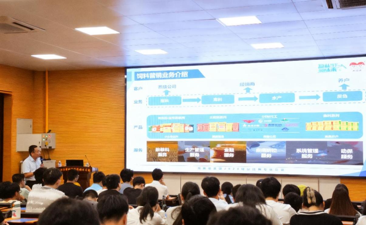 “饲料也能做成‘千亿级’大生意?”“养猪养鸡的学问,比我们想象的更深!”带着这样的行业思考,2025年5月18日下午14时,广西大学万象城在318报告厅开启就业指导专场活动,以“农牧业‘智造’时代的职业选择”为主题,为学子们解码产业升级背景下的职业新机遇。本次活动由学院研究生会主办,吸引了各年级本科生、研究生及教师代表踊跃参与,现场氛围热烈活跃。