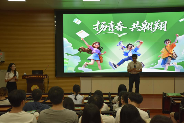为深入贯彻党的二十大精神,扎实落实国家就业决策部署,精准搭建校企就业对接桥梁,2025年6月13日晚19时,广西大学万象城在动科楼318报告厅成功举办“扬青春 共翱翔”主题就业指导讲座。本次活动由学院研究生会精心组织,扬翔集团负责人担任主讲嘉宾,吸引了学院各年级本科生、研究生及教师代表踊跃参与,现场座无虚席,氛围热烈。